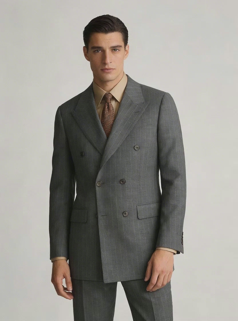 Crafted from 100% wool, this brown stripe half canvas blazer offers a clean, structured profile with natural drape and long term shape retention. The 300g/m fabric weight provides a solid feel that works well across multiple seasons while maintaining comfort throughout the day. The classic stripe pattern adds depth without overpowering the look, making this blazer appropriate for professional environments as well as refined everyday wear. The half canvas construction allows the jacket to mold naturally to the body over time while keeping the silhouette sharp and balanced.